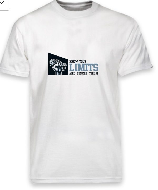 Either in black with the gripping T-Shirt, or Grey with the “know your limits” shirt.