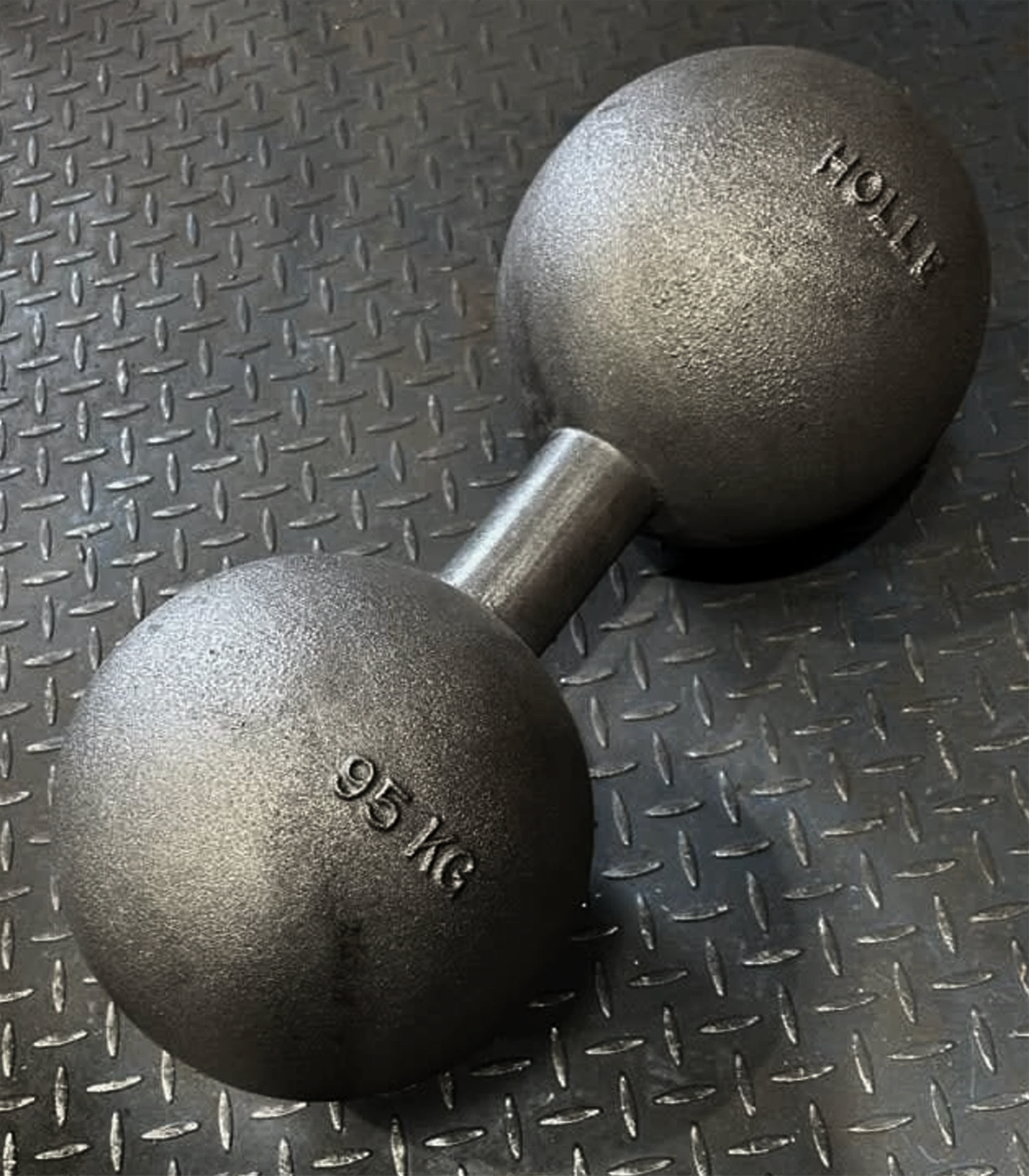 Thomas Inch Dumbbells, faithfully recreated from the original legendary design. Known for their challenging grip and formidable size, these Holle Grip replicas maintain the same demanding handle diameter as the original. Each dumbbell is crafted with precision, ensuring consistent grip training and allowing for steady progression as you conquer one of the most iconic challenges in grip sport.
